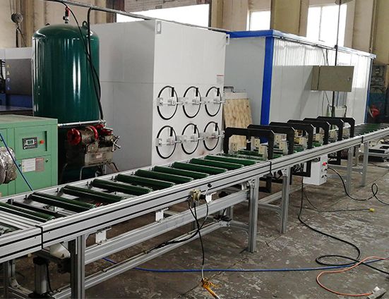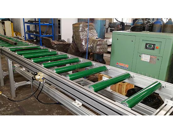 2. With relay control, pneumatic clamping, no power roller with integral installation, roller surface covered with polyurethane, to prevent scratching the bridge. The frame steel beam is formed by bending the steel plate and is supported by the steel pipe of the square pipe, which can be adjusted according to the need, the rack surface spray (gray). The upper pressing device is made of bolts with 8mm steel plate as a whole and guided by guide block. Work will be pre-installed bridge to the appropriate position, depress the foot switch, the top material device to lift the bridge from the roller in place after the remain intact, both sides of the clamping device action clamping the bridge, the last pressure Tight device action will be copper compacted. After the completion of artificial riveting, step down the foot switch, the pressure on the rise, both sides of the pressure release, the top material device down the bridge to fall back to the roller surface, the bridge pushed out to the discharge station for follow-up operation.